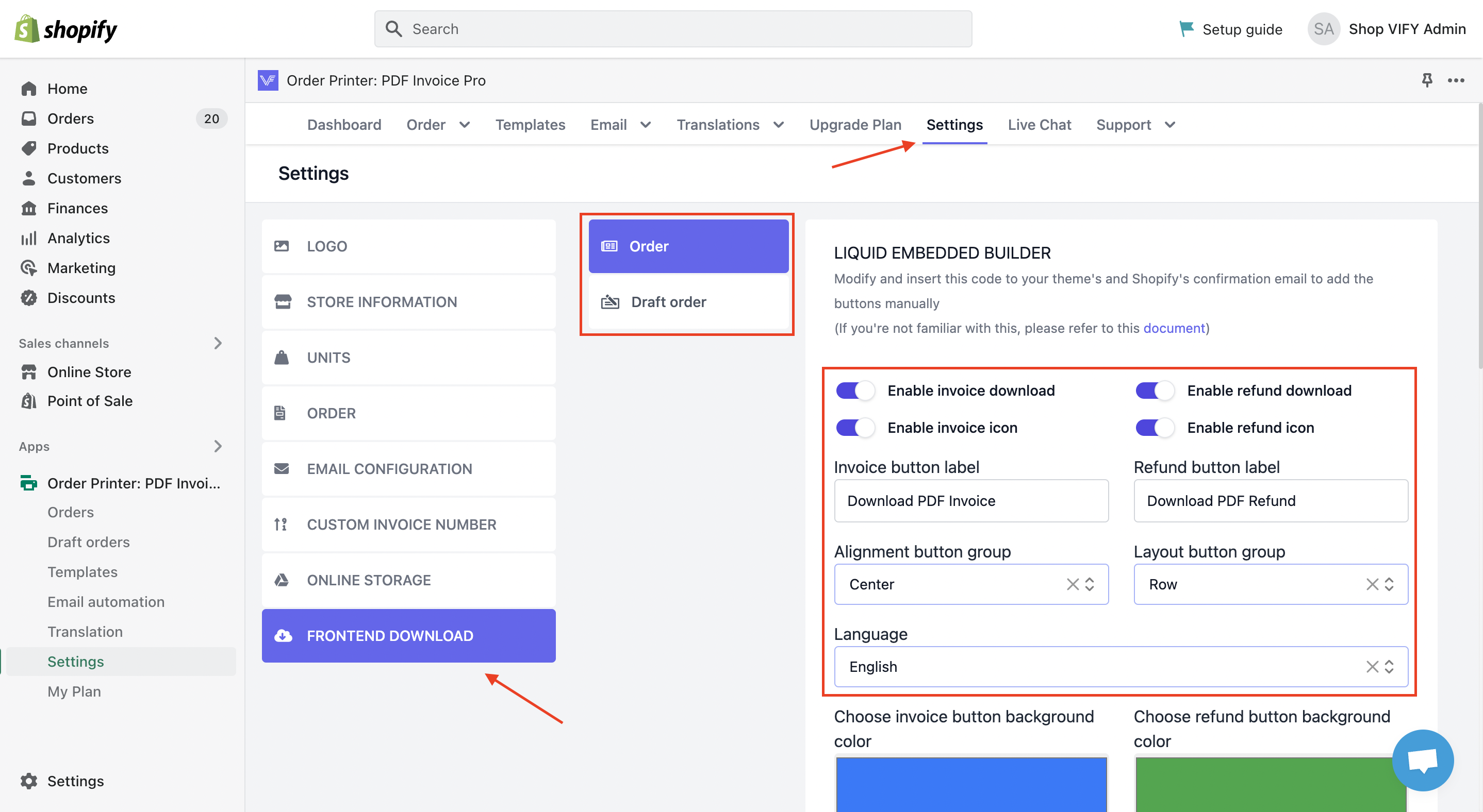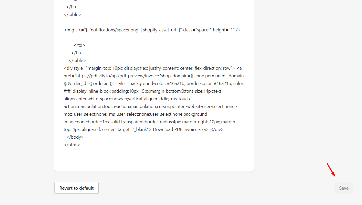 (In this article, it is about Order. To access setup for Draft order, please go to this link: https://support.vify.io/support/solutions/articles/69000444637-add-download-draft-order-invoice-button-to-shopify-s-invoice-email) - Edit everything as you wish