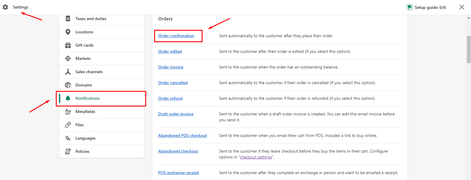In your Shopify admin page, go to Settings -> Notifications -> Order confirmation: