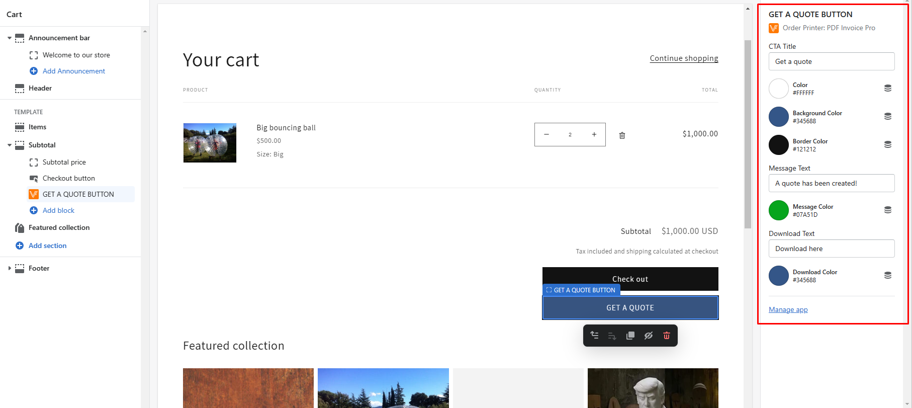 Under App section, you will see the GET A QUOTE BUTTON, hit to add it
